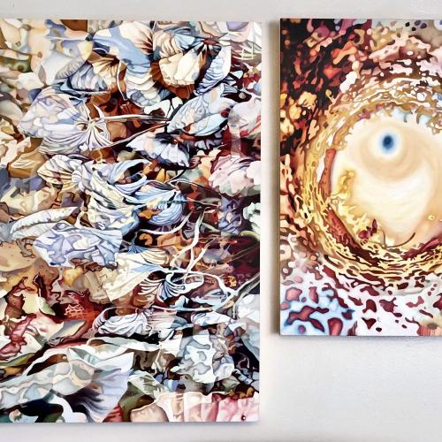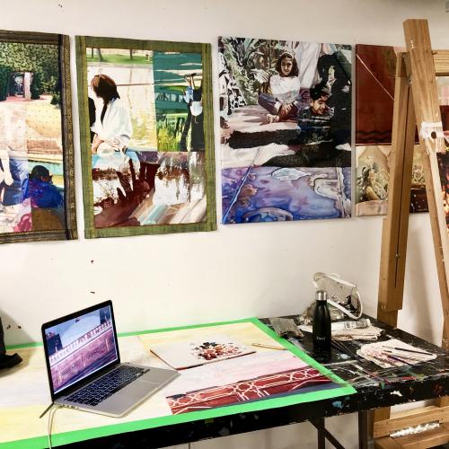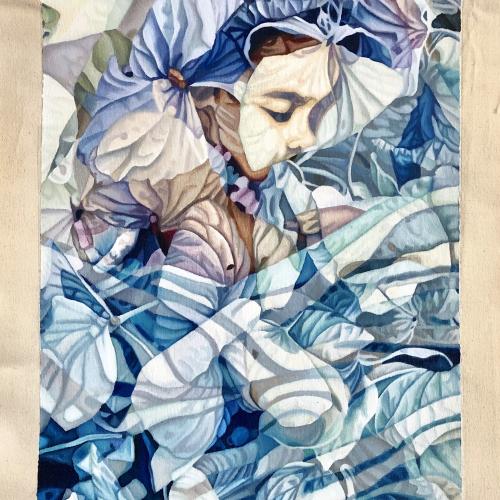 My artwork largely explores concepts of escapism through the creation of ‘dream-spaces’ and collective memory. The dream-spaces I create blur the lines between realistic representation and abstraction to create imagery that is both representative of the natural physical world and our emotional sense of the world. Collective memory is the memory of a group of people, passed down from one generation to the next. My own family’s collective memories are a diluted combination of thoughts, feelings, and events and are not an accurate account of reality, but rather a sentimental, idealized version of reality, which I find to be very fascinating. I take this already distorted account of reality and further reimagine it in my own mind, creating my own fabricated memory or story represented through art. I am interested in exploring the relationship between dreaming and memory and how both these things inform my view of the world. My goal is to create artwork that is fulfilling for myself and immersive and captivating for viewers.