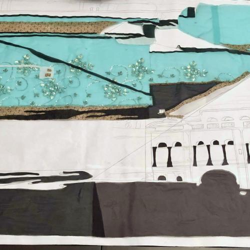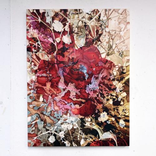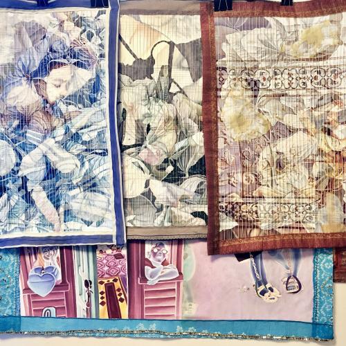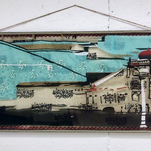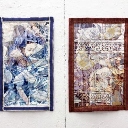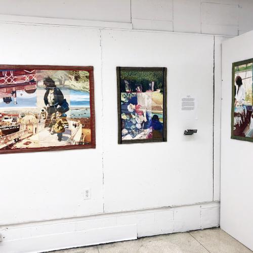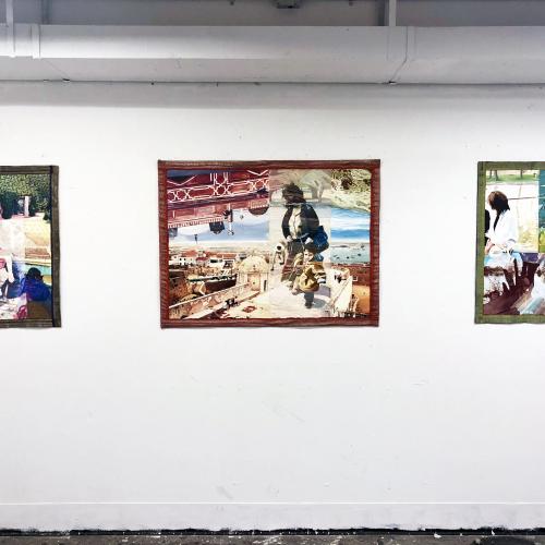 I like to use photography, acrylic ink, oil paint, and fabric.